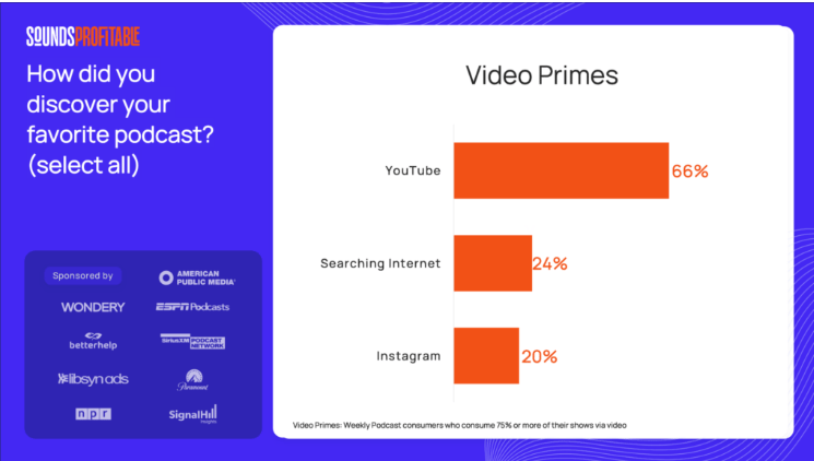 Recent research by Sounds Profitable Tom Webster underlines that the most loyal listeners of audio podcasts find their favorite shows on video platforms. And, for podcast discovery, YouTube is leading the way.