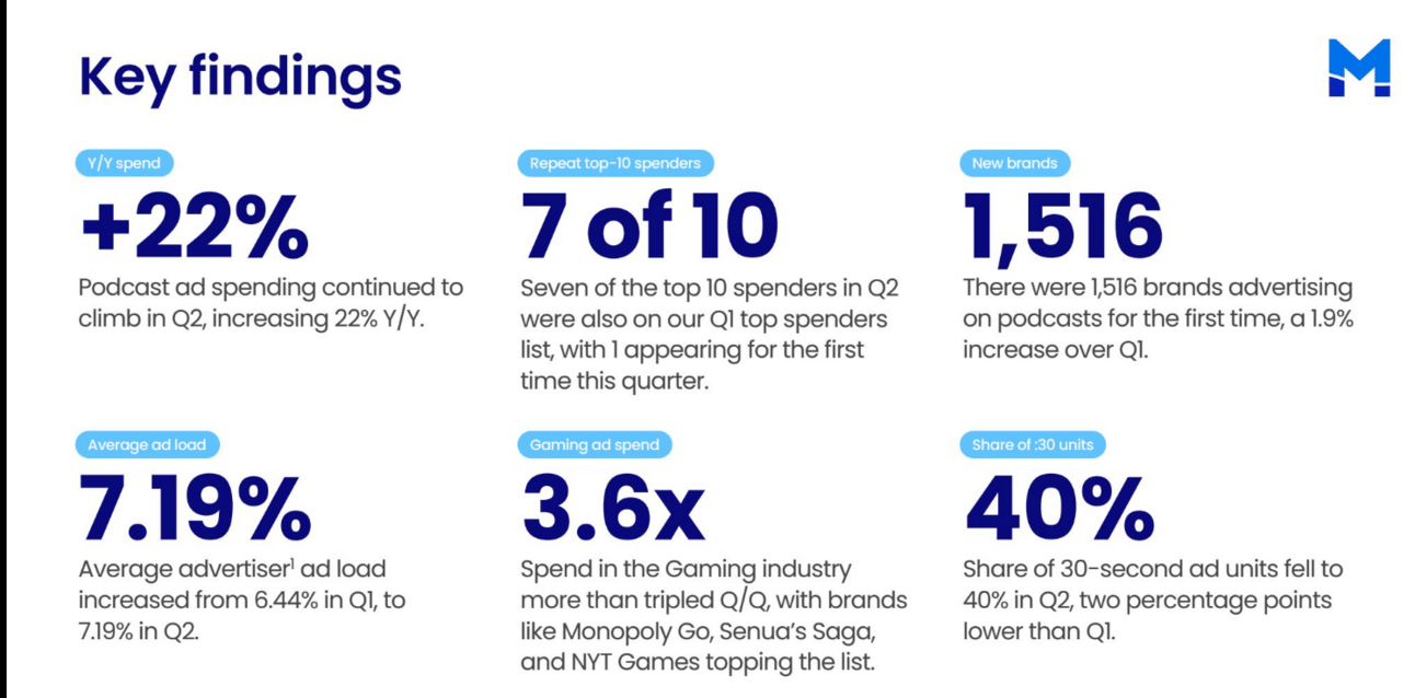 Ad analytics firm specializing in advertising analytics, Magellan AI, has released its Podcast Advertising Benchmark Report for Q2 2024.