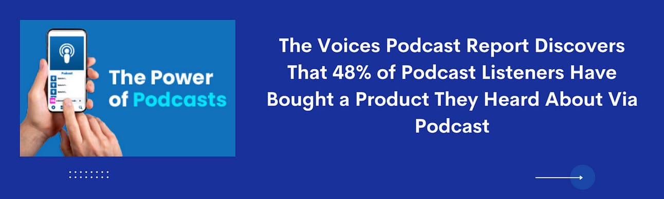 The Power of Podcasts Report was released today by Voices, the largest voice over marketplace in the world. It examines the listening and participation patterns of American podcast listeners. According to the study, 48% of podcast listeners have made a purchase after hearing about it in a podcast, proving the medium's worth as a promotional tool.