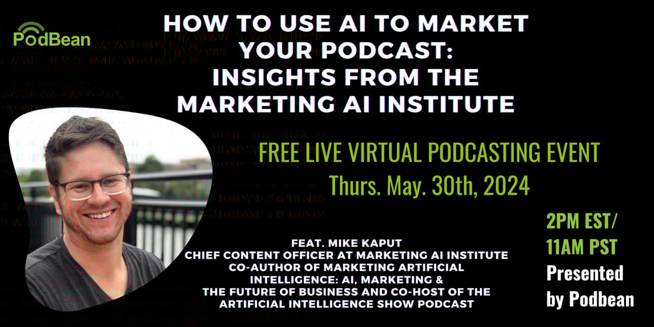 Podbean, a leading podcast hosting platform, is thrilled to announce a virtual event poised to transform how podcasters approach marketing. On May 30th, "How to Use AI to Market Your Podcast" will feature Mike Kaput, Chief Content Officer at Marketing AI Institute. This event aims to equip podcasters with the knowledge and tools to effectively use artificial intelligence to expand their reach and engagement.