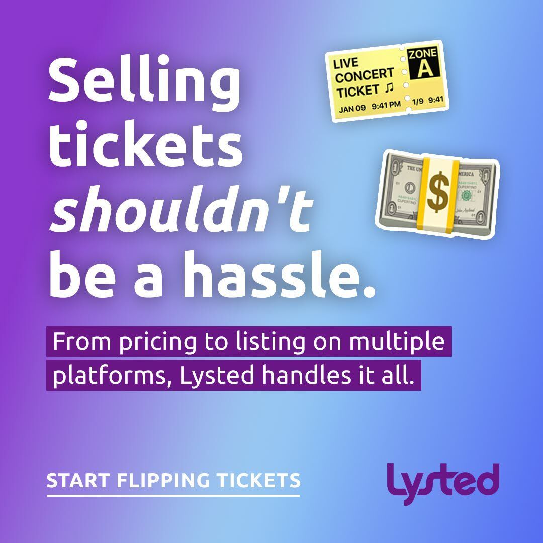 Ready to start a new side hustle that fits into your busy schedule? Lysted makes ticket reselling easy and profitable. If you have tickets you can't use, list them on Lysted and reach buyers on top platforms like StubHub, Ticketmaster, and Seat Geek.
