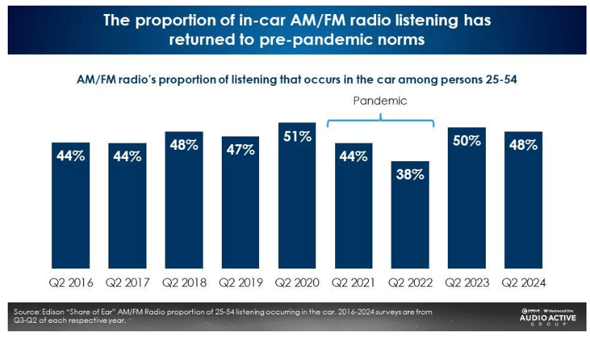 AM/FM radio has a huge 86% share of in-car ad-supported audio
