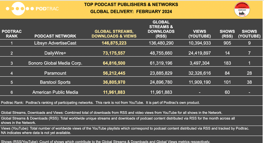 Average Global Downloads & Views per RSS feed was down 4% month-over-month.
